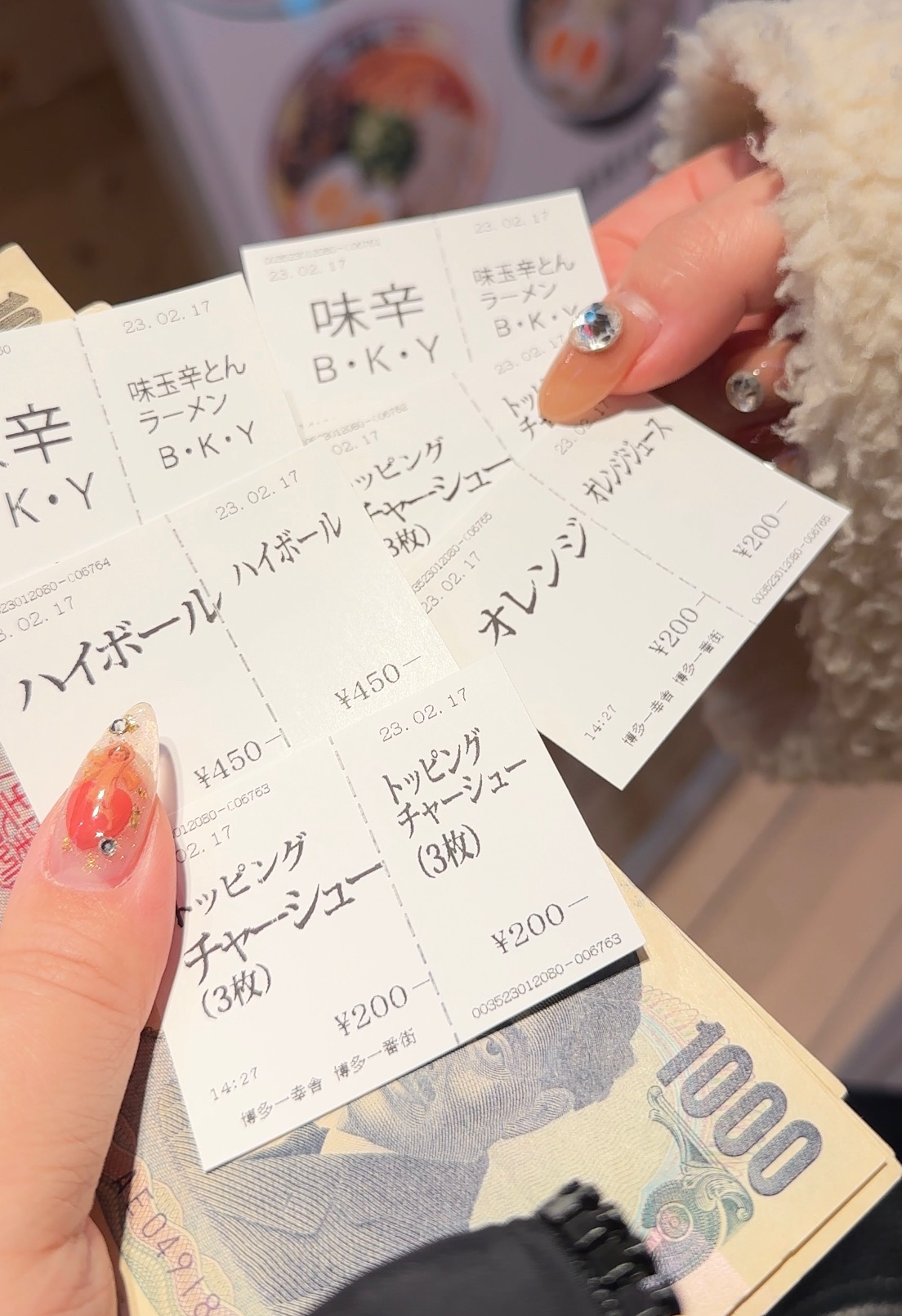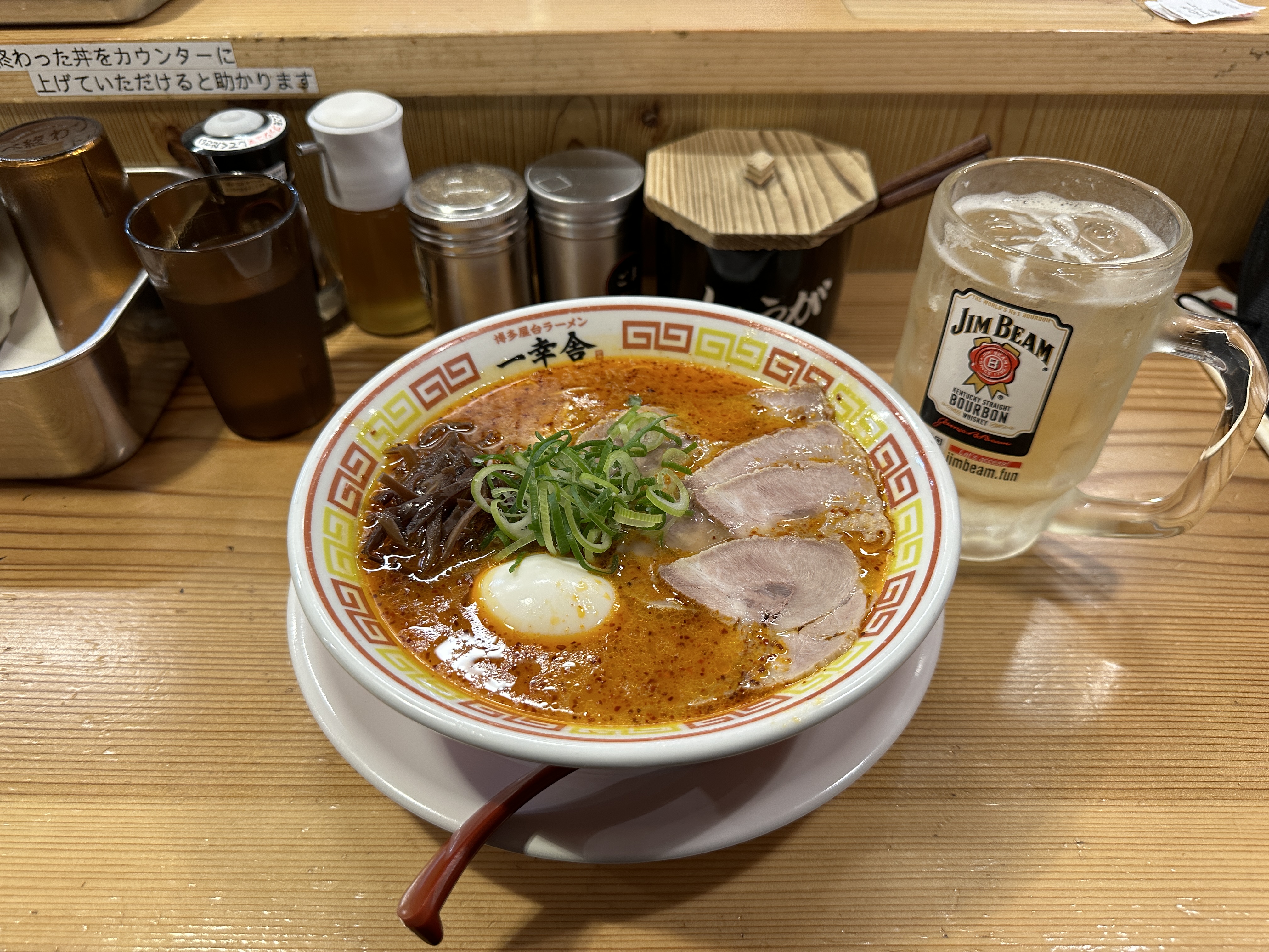 신돈라멘을 시켰다. 차슈추가. 하이볼1. 오렌지쥬스1.