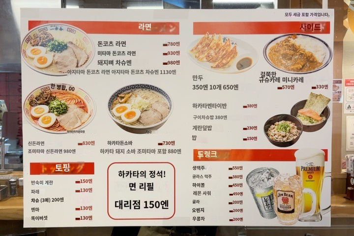 (면 리필이 무려 150엔)